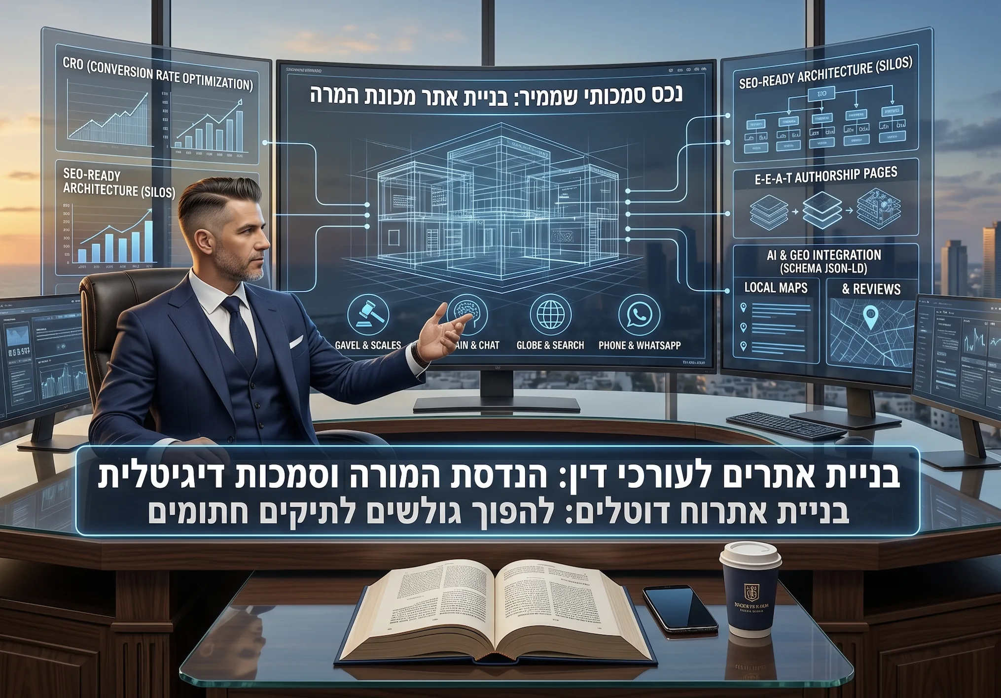 - חיזוק הנוכחות הדיגיטלית באמצעות אתר מקצועי, תוכן ממוקד ומותאם לגוגל, וניהול מותג שמבדל את המשרד